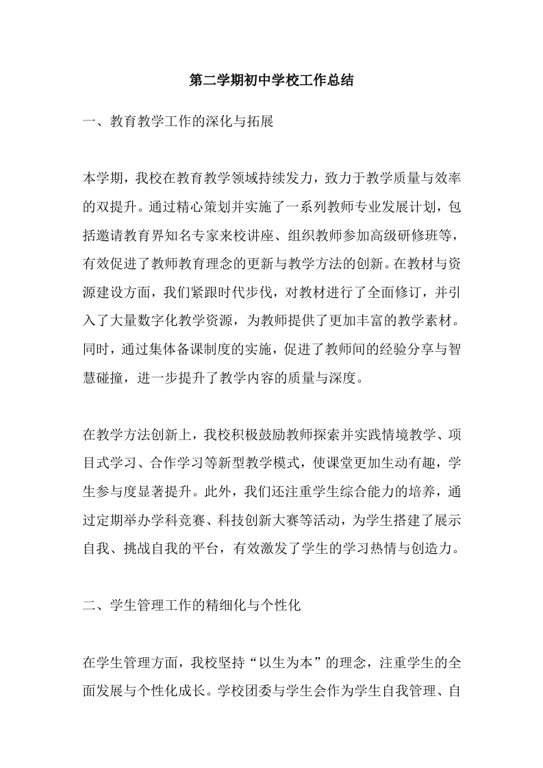 第二学期初中学校工作总结