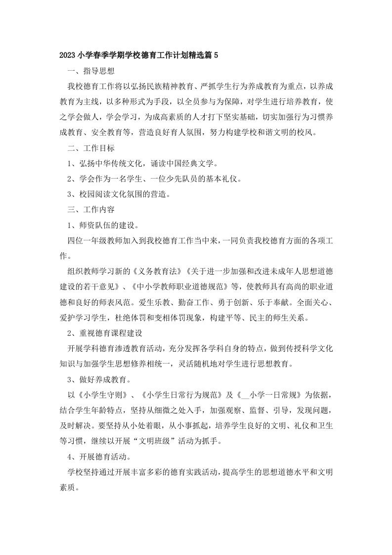 首页德育资料计划总结2023小学春季学期学校德育工作计划精选篇5