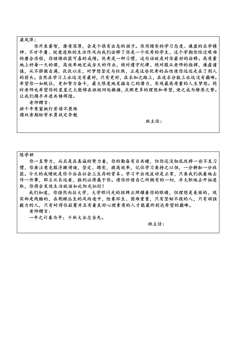 首页教师资料教学常用高三第一学期学生评语(18页)