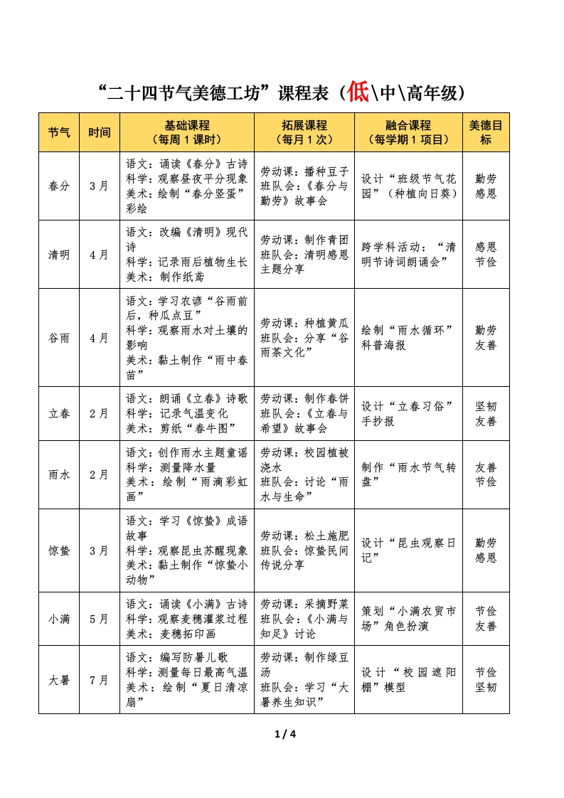 首页德育资料计划总结二十四节气美德工坊——学校德育品牌建设工作实施方案 【附件1】