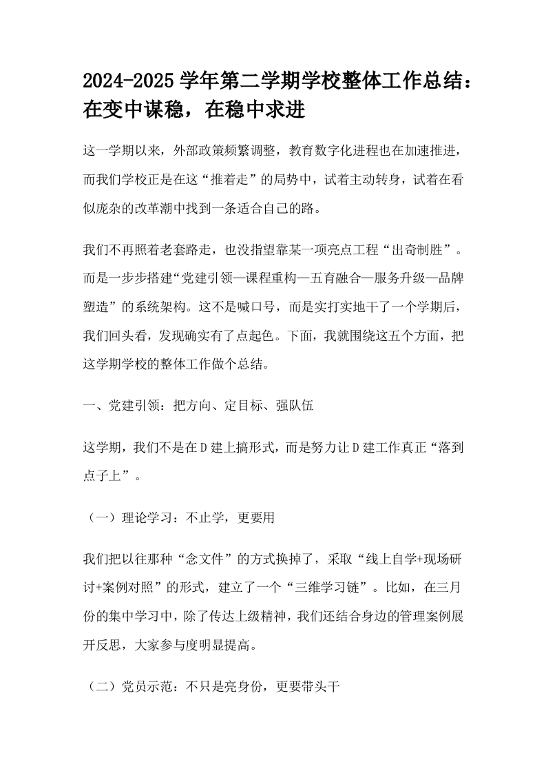 2024-2025学年第二学期学校整体工作总结:在变中谋稳,在稳中求进