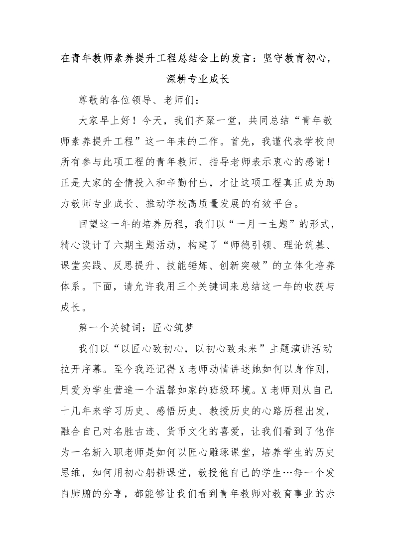 在青年教师素养提升工程总结会上的发言:坚守教育初心,深耕专业成长