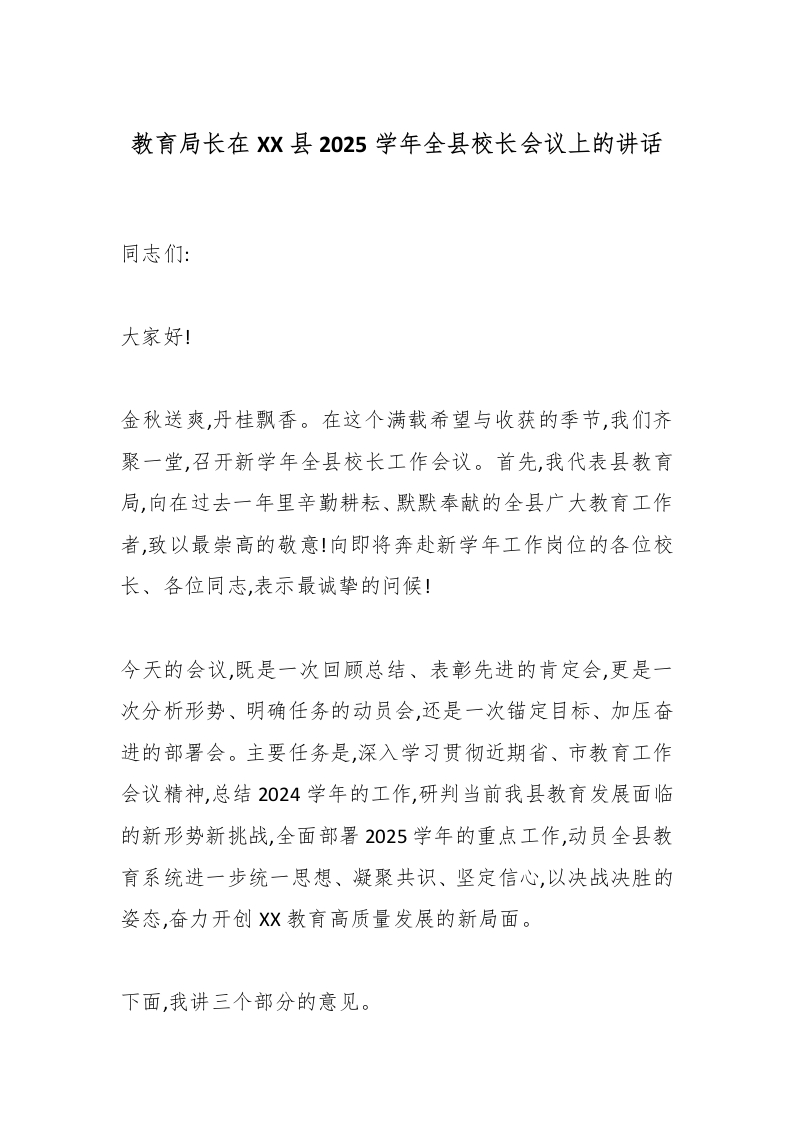 首页党建资料讲稿讲话教育局长在XX县2025学年全县校长会议上的讲话