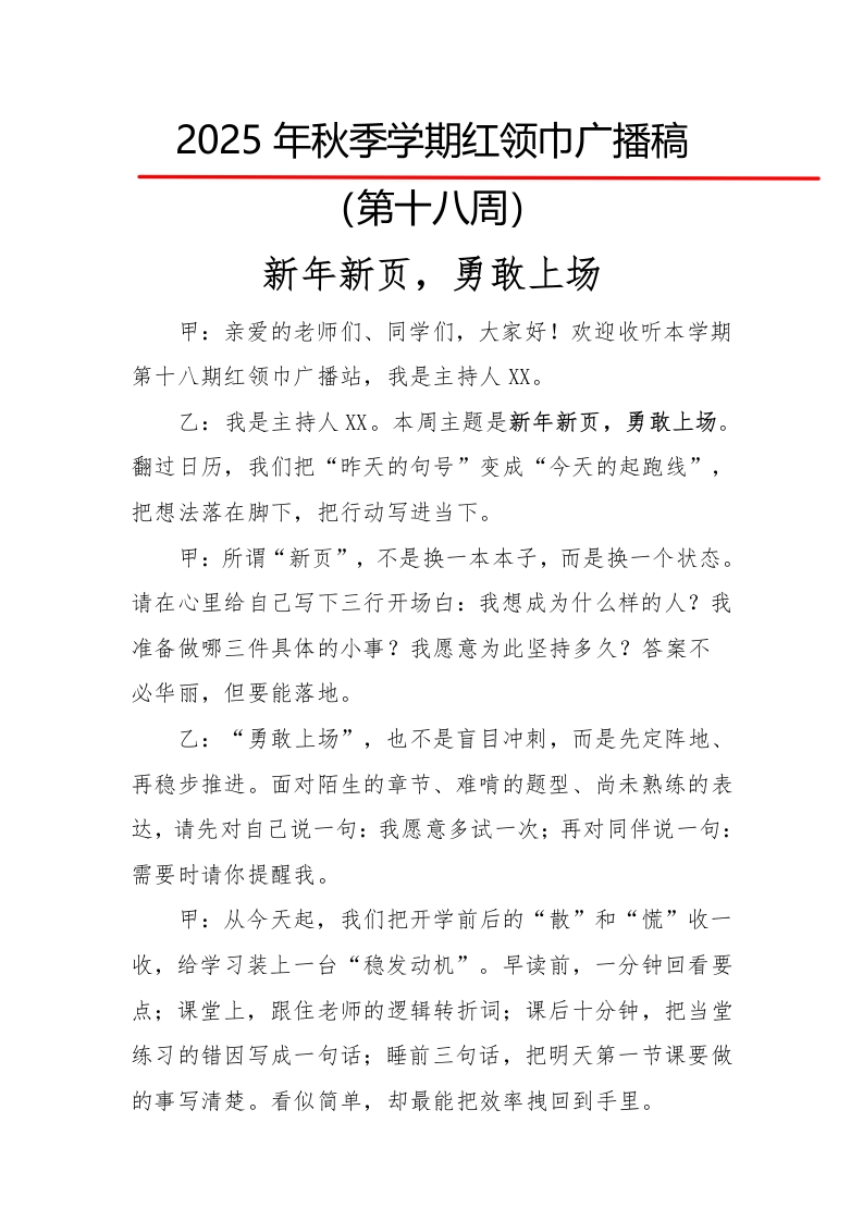 2025年秋季第一学期红领巾广播稿(22周):第18周 新年新页,勇敢上场
