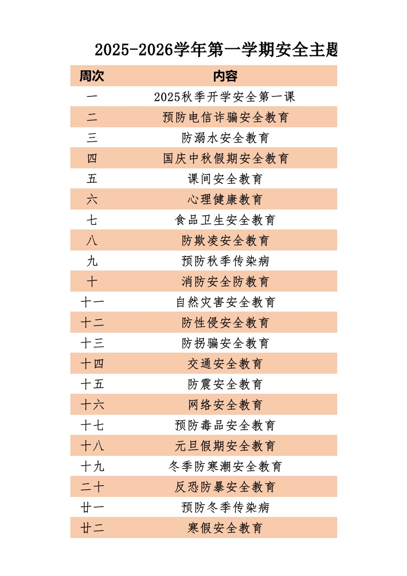 2025-2026秋季学年第一学期安全主题教育表